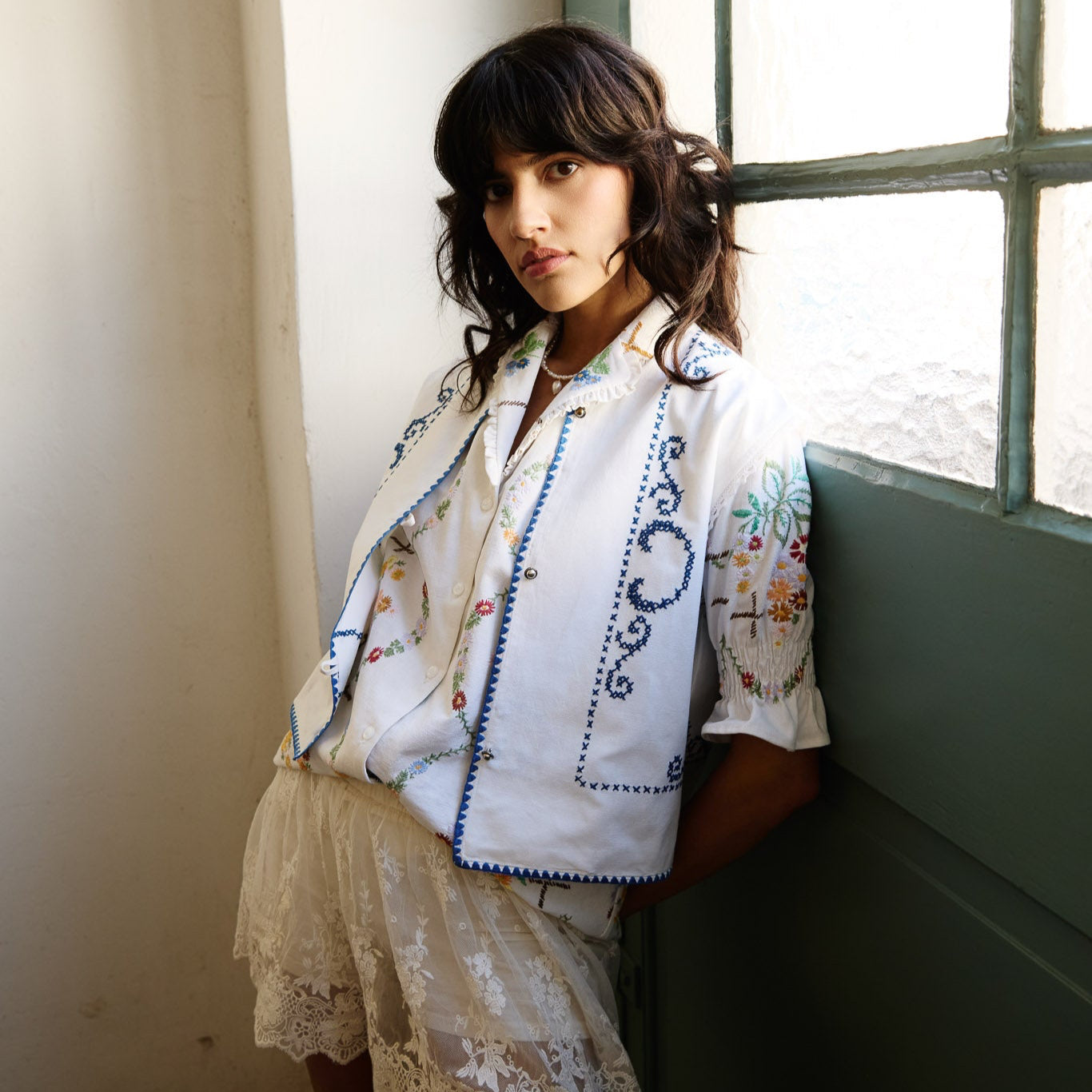 "Alte Schätze" ist eine Hommage an Materialien mit Vergangenheit. Textile Fundstücke die Geschichten in sich tragen und durch behutsame Verarbeitung ein neues Kapitel beginnen dürfen. Viele dieser Stoffe wurden über Jahre hinweg genutzt und wiesen sichtbare Gebrauchsspuren auf. Statt diese als Makel zu betrachten, habe ich sie als Ausgangspunkt für meine Entwürfe genommen. Ich habe Textilien gereinigt, beschädigte Bereiche aufgearbeitet und jeden Zuschnitt auf die Gegebenheiten des jeweiligen Materials abgestimmt.